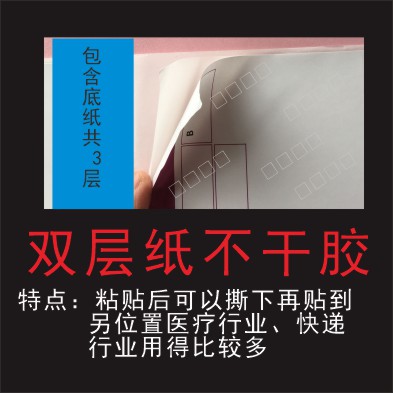 2.印刷用纸为表面基体,涂布压感性胶水,下面与涂布剥离剂的底纸复合结构(也称之为自性贴)。前者可用非